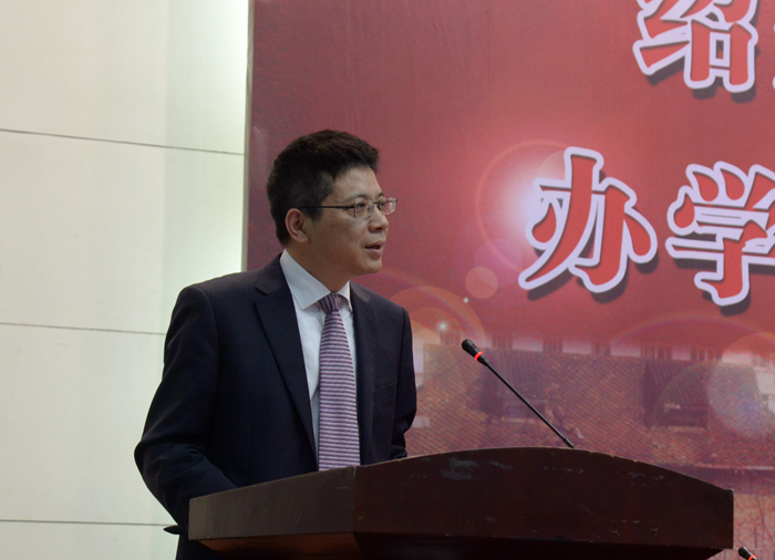 顾涛代表市政府向医学院全体师生员工、专家学者、医务人员和广大校友表示热烈祝贺。顾涛充分肯定了一百年来医学院为绍兴医学教育和医药卫生事业发展作出的贡献,并对医学院的发展提出了三点希望和要求:一要落实立德树人根本任务,在培养有灵魂有温度的医学生方面实现新作为;二要夯实“固本强基”人才工程,在高水平师资队伍建设方面实现新突破;三要加强医教协同院校合作,在提高医学生人才培养质量方面取得新进展。