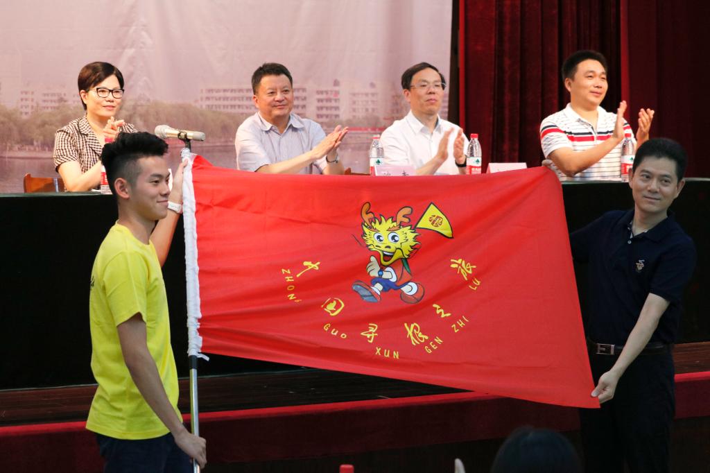 开营仪式上,陈皆烨向营员代表授营旗,宣绍龙、王姿琴分别向营员代表授队旗,校团委书记吕志伟向志愿者代表授队旗。余利明宣布夏令营正式开营。