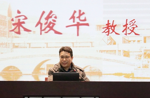 12月24日晚上,中山大学中国非物质文化遗产研究中心主任、博士生导师、广东省非物质文化遗产保护专家委员会专家宋俊华教授做客风则江大讲堂,为我校师生带来题为《非遗保护与传统文化创新》的讲座。副校长张宏,校党委委员、组织部部长宣绍龙出席活动。