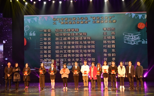 12月24日晚,绍兴市第三届“大学生寝室文化节”之“最美寝室”颁奖展演在市文化中心举行。市人大常委会副主任丁晓燕,副市长顾涛,市政协副主席陈国阳,市委宣传部副部长黄爱芬,市教育局党委书记、局长姚国海,校党委副书记郝敬习以及在绍11所高校相关负责人和400余名师生代表参加晚会。