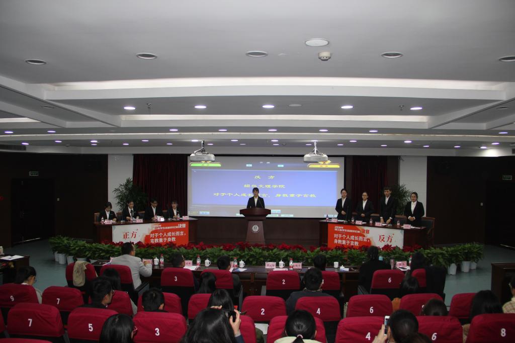 双方围绕“对于个人成长而言,言教重于身教”还是“对于个人成长而言,身教重于言教”这一辩题展开对决。双方均展示出自身独到的见解,为观众们呈现了一场精妙绝伦的思想交锋。最终经评委投票,浙江师范大学以3:2获胜,获得冠军,我校获得亚军。