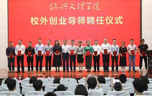颁奖典礼结束后,学校举行了校外导师聘任仪式及2019年校大学生创新创业大赛决赛。来自喜临门家具股份有限公司、浙江离娄科技公司、绍兴市文旅集团等单位的14位热心创新创业教育工作的企业家被聘任为校外创业导师。