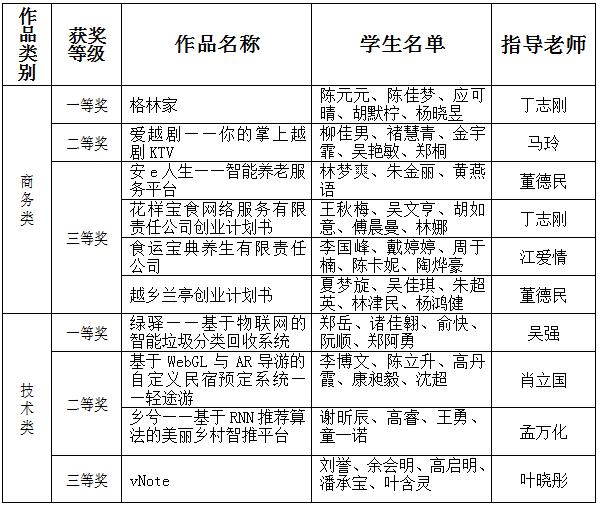 5月31日至6月1日,浙江省“赢动教育•悦为电商杯”第十四届大学生电子商务竞赛暨第九届全国大学生电子商务“创新、创意及创业”挑战赛浙江分赛区选拔赛决赛在义乌工商职业技术学院举行。我校提交了商务类、技术类共23个作品,最终获一等奖2项,二等奖3项,三等奖5项。其中商学院丁志刚老师指导的学生团队(陈元元、陈佳梦、应可晴、胡默柠、杨晓昱)的作品《格林家》与机电学院吴强老师指导的团队(郑岳、诸佳翱、阮顺、俞快、郑阿勇)的作品《绿驿——基于物联网的智能垃圾分类回收系统》获得一等奖;来自商学院、数理信息学院和机电学院的3个团队作品分获二等奖。