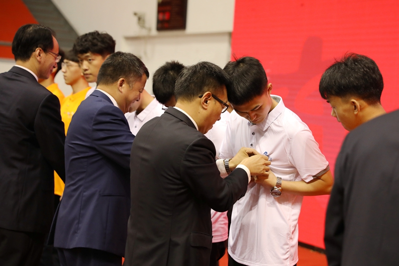 校领导为新生代表佩戴校徽