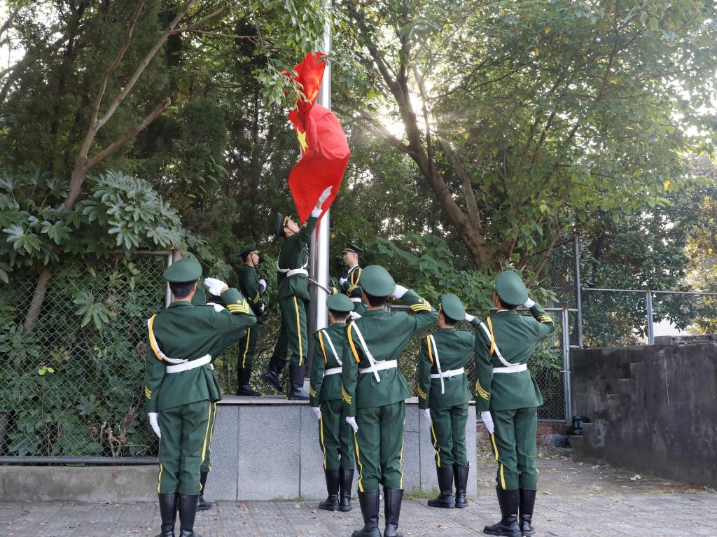 “作为学校国旗班的一员,本次活动对我触动很大。爱国,不是空洞的口号,而是具体的行动。训练时每一个口令,每一个正步,每一次付出,都是对自己的突破,饱含对祖国的热爱。”国旗班成员莫洋洋说道。