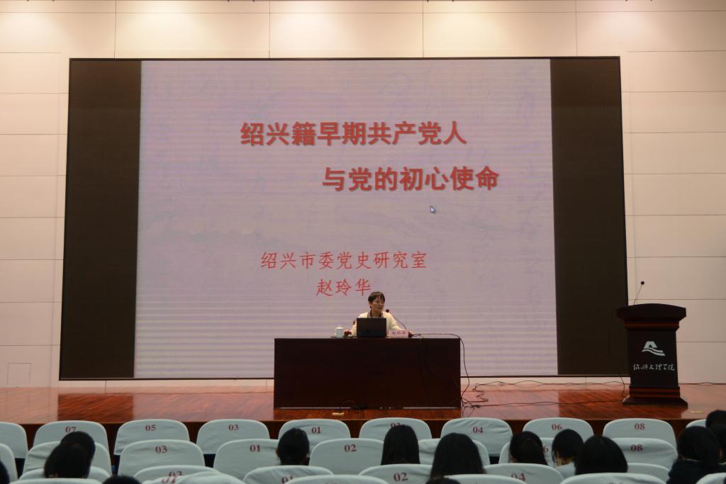 11月13日晚,绍兴市委党史研究室主任赵玲华做客“时政大课堂”,作题为《绍兴籍早期共产党人与党的初心使命》的讲座。部分二级学院学生科长、辅导员、马克思主义学院全体学生、外国语学院2019级新生、人文学院2019级新生300余人聆听了讲座。