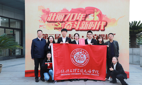 经过初赛选拔,我校和省内其它7所本科高校、4所高职院校进入决赛,同台竞技。决赛现场,各高校选手经个人必答、时政评论、小组抢答、小组风险题四个环节角逐胜负。元培学院首次组队并派出由党委组织宣传部齐陈蕴、黄建军为指导教师,土木1701班徐振宇,国贸1701班朱佳莉,园林1702班徐燕娜、潘华键,物流1701班侯晓幼,翻译1702班郑璐等6名同学组成的参赛队,队员们凭借扎实的知识储备、机智的临场反应与默契的团队配合,最终在激烈的角逐中脱颖而出,名列全省第一名,荣获一等奖。