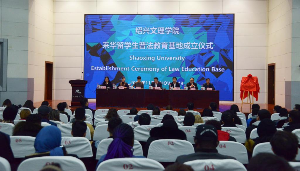 11月28日,我校与绍兴市司法局、市公安局、市中级人民法院、市检察院等单位联合建立来华留学生普法教育基地,基地成立仪式在河西校区铁城报告厅隆重举行。我校副校长张宏,市司法局局长王旭波,市公安局党委委员、市流动人口管理服务中心主任陆伟香,市中级人民法院副院长周剑敏,市检察院副检察长周慧娟,市司法局副局长李仲辉出席成立仪式,我校相关职能部门负责人、留学生辅导员、班主任和300余名留学生参加仪式。国际教育学院负责人主持仪式。