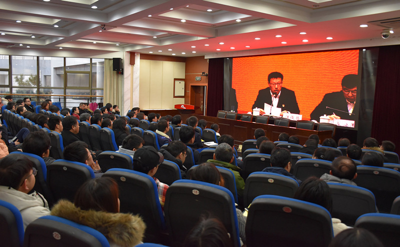 会议以视频会议形式召开,设1个主会场和9个分会场。学校党政领导班子成员、中层干部,机关、离退休、机械与电气工程学院党委和资产经营公司直属党支部党员代表400余人在主会场参会,其余科级以上干部、党员在各分会场参会。