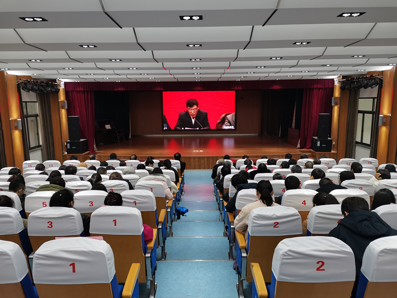 上虞分院参会人员在上虞分院大学生活动中心收看会议。