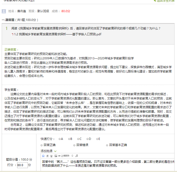 图7 学习通平台学生作业与教师批阅2