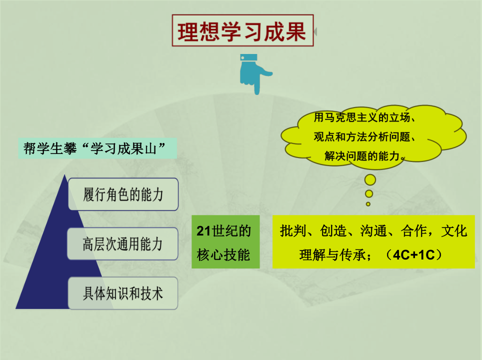 在线教学看不到学生,如何调动学生的积极性?如何使学生有效地学?如何知道学生学的怎么样?网络教学把思政课本就普遍存在的问题放大了,这也倒逼思政课教学摆脱传统的以“教”为中心,即以“教师、教室、教材”为中心的课程设计,转向以“学”为中心,即主要关注“学什么?怎么学?学到啥?”的课程设计。学为中心的教学设计是一种成果导向的反向设计思路。即,首先制定预期学习目标,然后设计相应的能够促进这一目标实现的学习活动,使得学习目标能够被实现。最后设计相应的学习测评,使教师可以判断学生的学业表现是否达到目标,并将这些判断转化为学生的平时成绩,给学生以及时的反馈和激励。