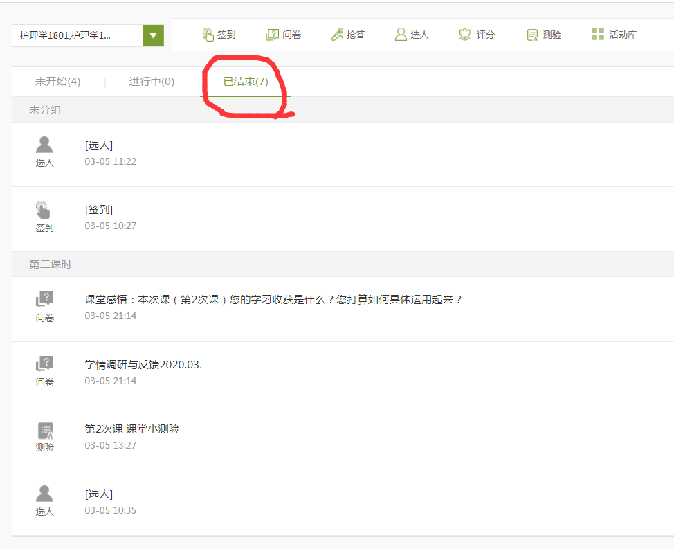 ②利用超星学习通的活动功能,事先准备好所要开展的课堂活动,如签到、问卷、选人、随堂测验、问卷调查(可用于撰写每次课的课堂感悟)等,上课的时候随时发布这些活动。这是我新发现的,今天亲测很好用,这样的机制下,学生一走神就会错过一些教学活动,继而失去相应的平时成绩,对于克服听课的倦怠比较有效。