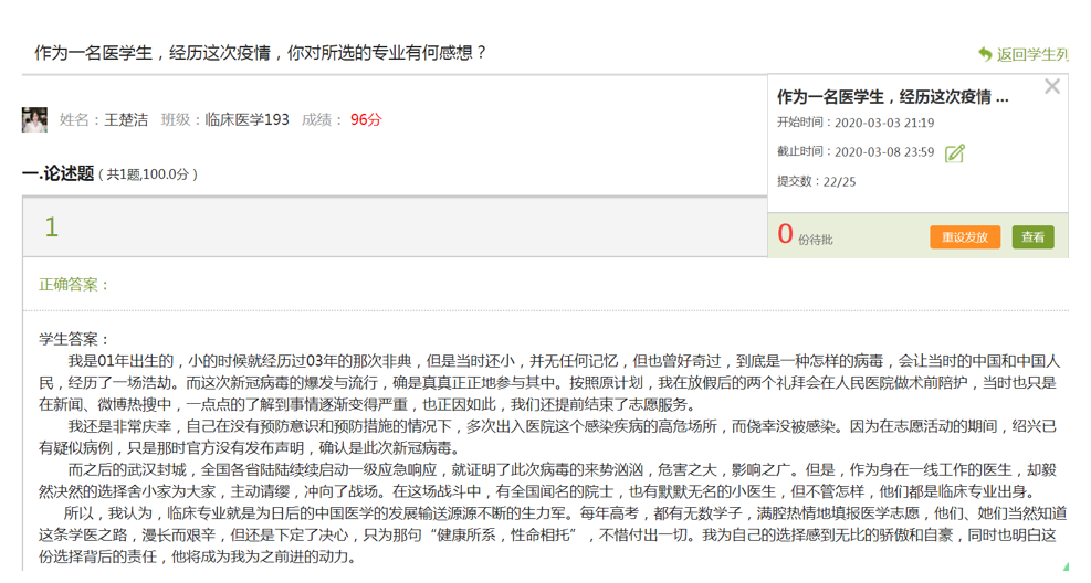 以学为中心,有效地利用超星学习通、钉钉、ZOOM等网络平台贯穿于在线课程教学过程,搭载“学、问、思、用”系统化流程,使学生真正参与到学习过程中,并取得了良好的效果。高质量的师生、生生交互学习活动,使本课程在线教学短短2周内受到了学生们的赞同和好评。我也被学生的纷纷留言深深感动,同时深刻领悟到,在疫情背景下,如何使在线翻转教学更有效,最核心的就是依据学习目标,设计高质量的交互教学活动,通过优良的学习活动设计,多元的学习评价,及时的督学反馈,遵循OBE理念,实践“学生中心,产出导向,持续改进”的在线课程学习。