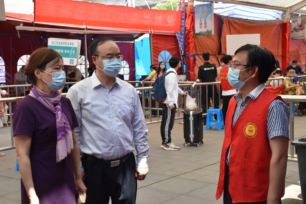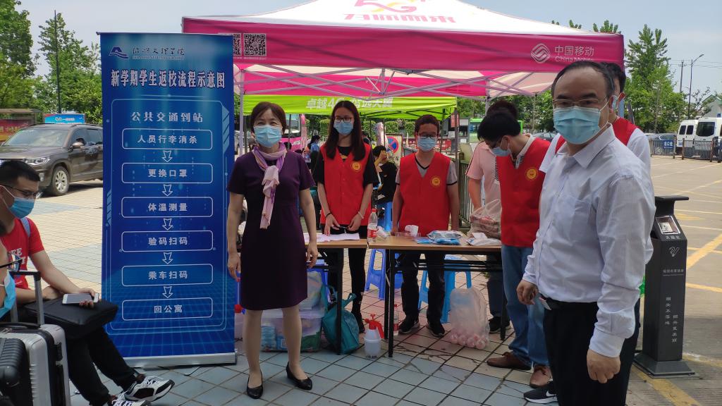 校领导们详细询问了各接站点志愿者安排、车辆调度及学生返校等情况,对志愿者们忙碌而有序的接站工作表示肯定,赞赏了他们的工作态度和敬业精神,叮嘱他们注意防暑降温和自身安全,并鼓励志愿者们再接再厉,圆满完成学生返校接站工作。
