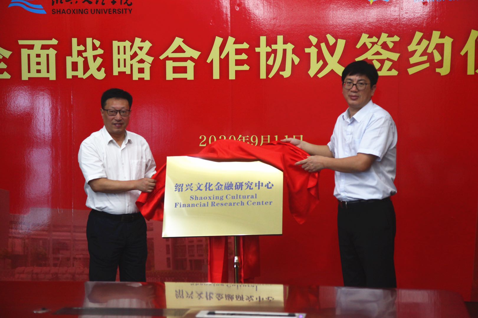 9月11日上午,绍兴文化金融研究中心揭牌仪式在绍兴银行总部会议室举行。校党委书记汪俊昌,副校长寿永明,绍兴银行行长金建康、副行长江绍东出席揭牌仪式,校计划财务处、人文社会科学处、商学院等相关负责人,以及绍兴银行相关领导和人员参加揭牌仪式。
