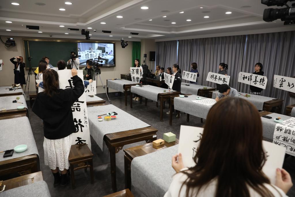 交流会上,来自台湾中国文化大学的师生借助现代互联网科技,通过视频连线方式与我校师生相聚一堂,交流书法、篆刻、碑拓的创作经验,探讨中国传统文化的传承和发扬,现场文墨飘香、和乐融融,两岸师生带着美好的祝愿,通过书画交流活动,凝聚力量,携手奋进。
