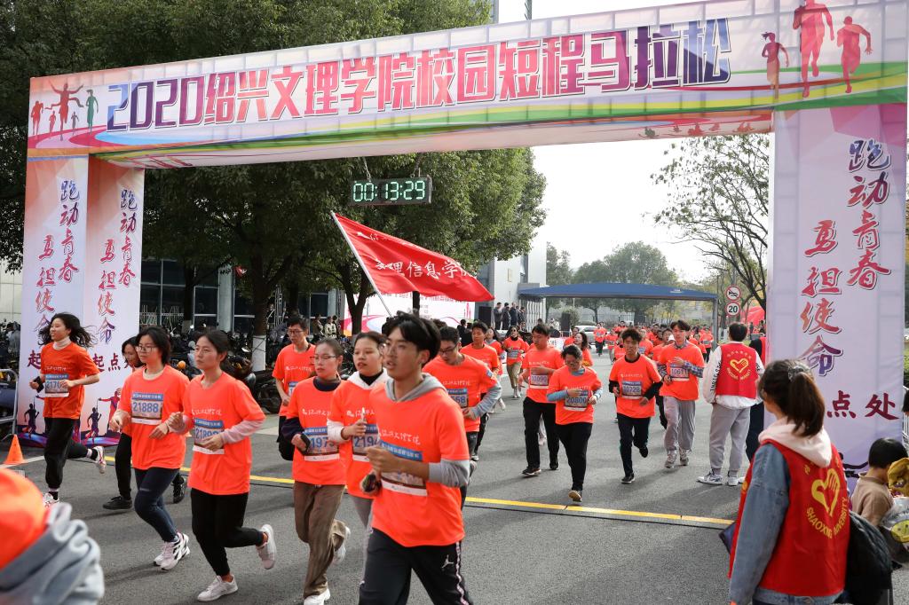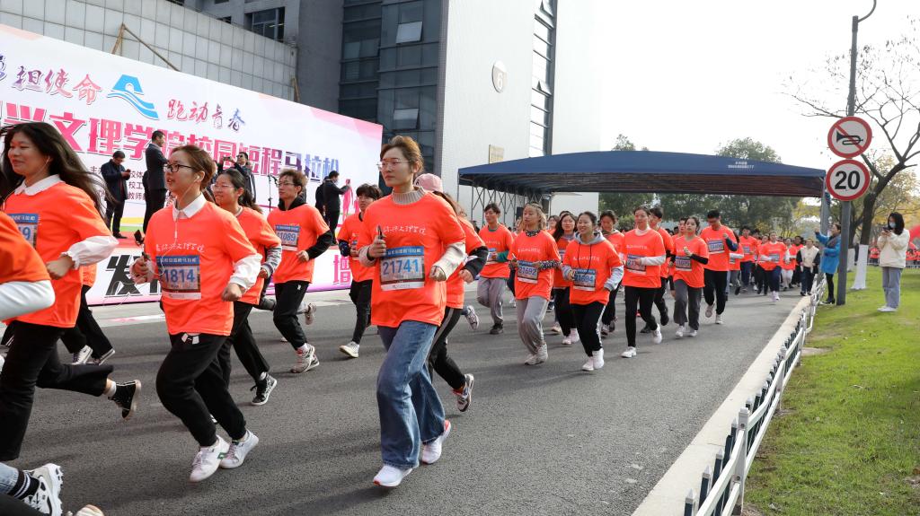 本次校园马拉松比赛全程约4公里,全校17个方阵近3500名师生参加比赛。