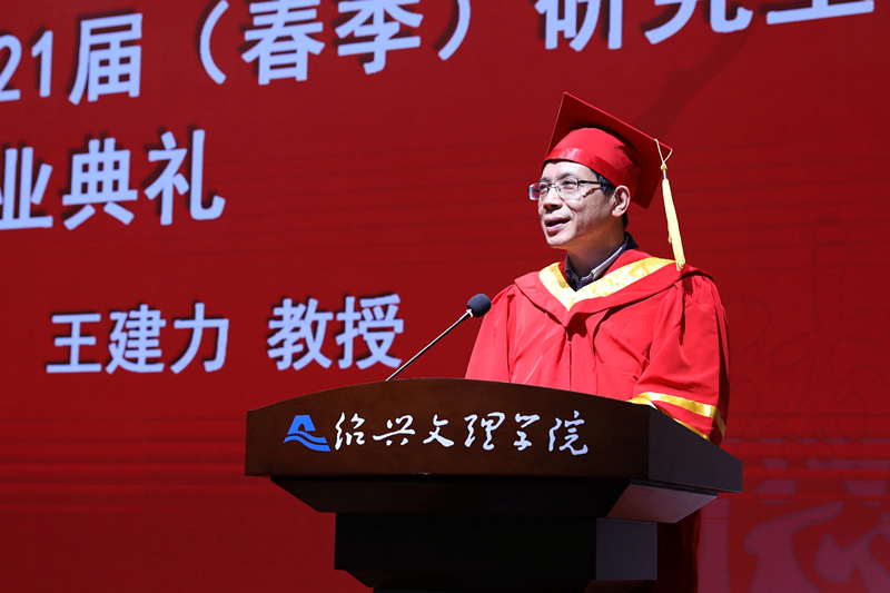 王建力为毕业生代表授予学位,颁发毕业证书。他代表学校对获得硕士学位的毕业生表示祝贺,向辛勤培育他们的导师和支持他们成长成才的亲友表示感谢。他对即将毕业离校的同学提出三点希望:一是牢记“修德”校训,厚植家国情怀;二是永葆“求真”精神,勇于开拓创新;三是秉持“卓越”理念,奋力成就梦想。