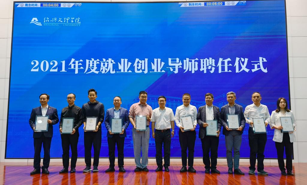 汪俊昌为就业创业导师颁发聘书,分别聘任5位资深创业者、创新创业赛事专家为我校大学生创新创业导师,聘任绍兴市公用事业集团副总经理金一鸣、中国绍兴黄酒集团有限公司工会工作委员会主任陈国林、绍兴集成电路产业园管委会主任任宇、绍兴市柯桥区西纺纺织产业创新研究院董事长沈开方、海智汇·绍兴国际人才创业创新服务中心总经理索苏为就业导师。