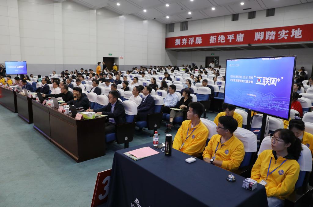 就业创业导师聘任、基地授牌仪式后,举办了2021年度“互联网+”大学生创新创业大赛决赛。“互联网+”大学生创新创业大赛是教育部牵头组织的创新创业顶级赛事,具有参赛规模大、覆盖面广、赛事含金量高的特点。本次校赛自去年11月份启动,全校共有100个项目申报,634人次参加,参赛项目数和参与人数规模创历年新高。经过初赛、复赛评审,共有15个项目入围校赛决赛。