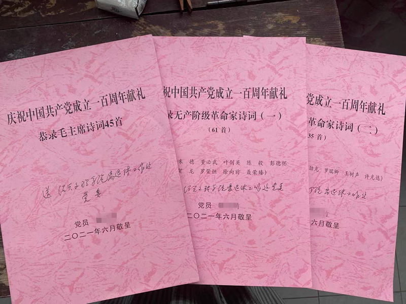会后,一名有着65年党龄的党员同志向党缴纳2万元特殊党费。他表示,是党培养了自己,让自己有了回报社会的本领,欣逢中国共产党百年华诞,非常兴奋、非常激动、非常光荣。他还手写了三本无产阶级革命家诗词,抒发自己对中国共产党深切的感激和真挚的热爱。
