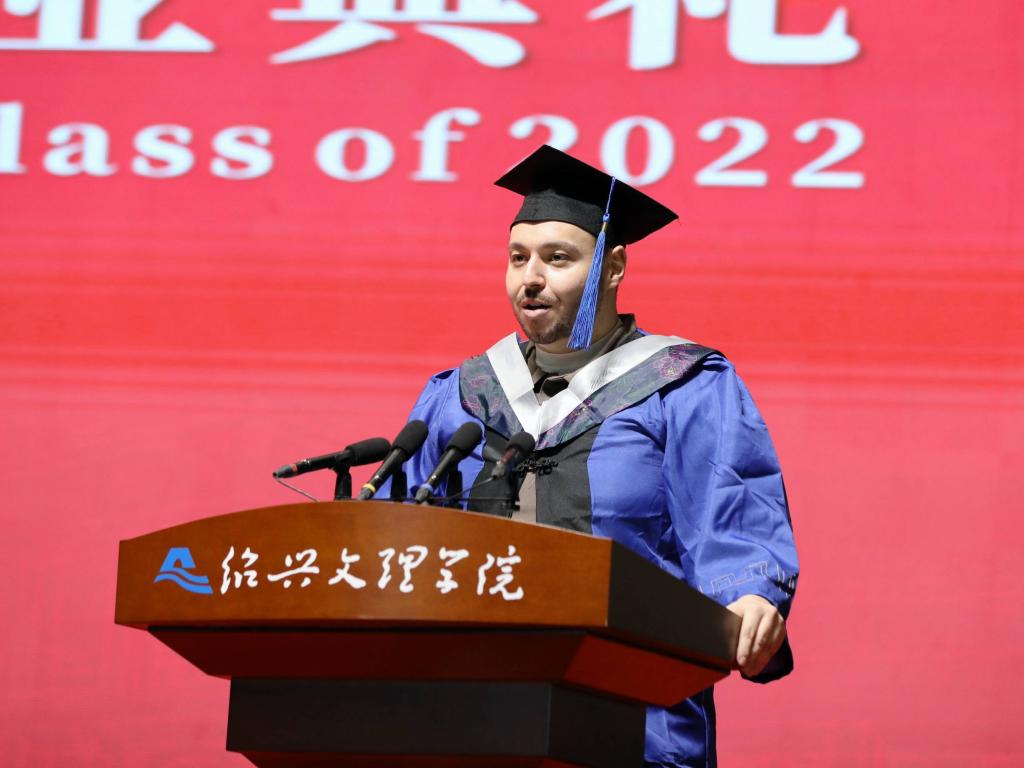 将赴河海大学攻读博士学位的杜力作为国际留学生毕业生代表发言。