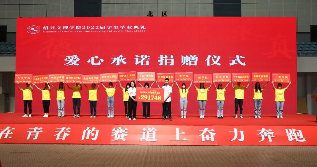作为毕业生离开母校时爱校教育的一项传统活动,“爱心承诺”在文理已经接力了26年,“爱心承诺”凝聚着毕业生们对母校和学弟学妹的深情厚谊。今年又有1213名同学作出了“爱心承诺”,总金额达291748元。在校生代表学校接受毕业生爱心承诺捐款。