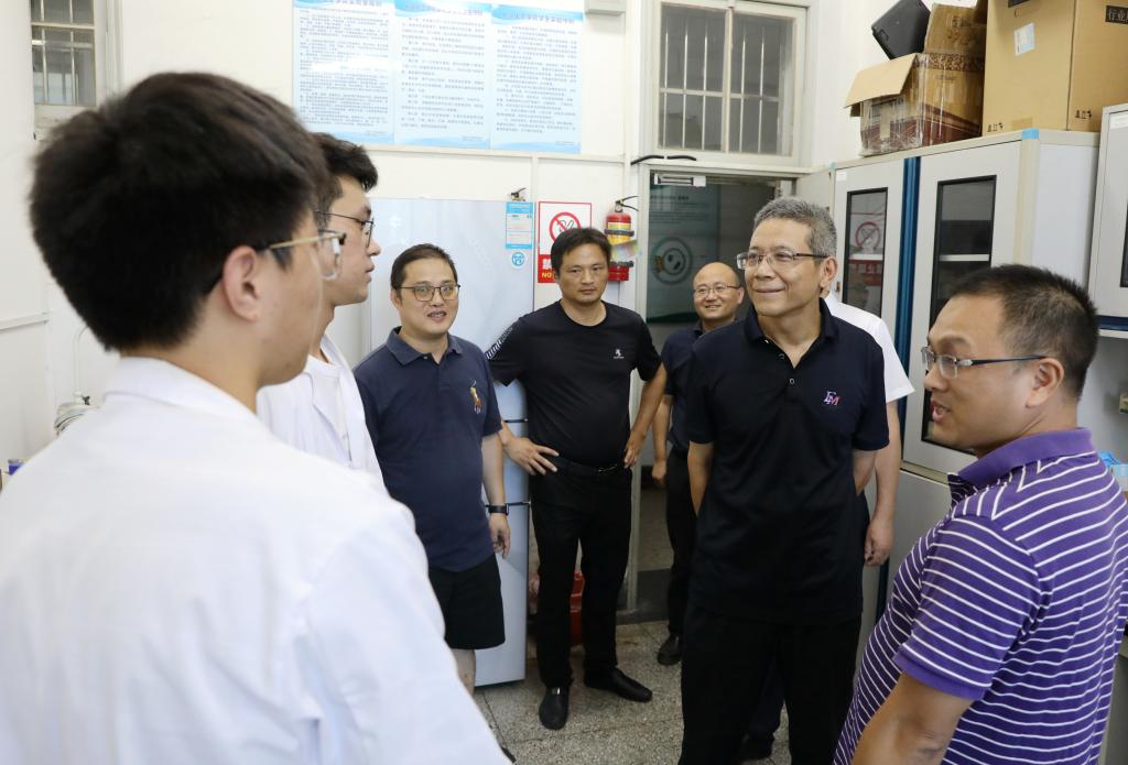 在各二级学院实验室和科研工作室,王建力向在暑期坚守岗位潜心科研工作的教师们致以亲切的问候,对老师们的敬业精神给予了高度赞扬。他详细询问了各项工作的保障情况和近期取得的研究成果,叮嘱大家注意防暑降温,保重身体,并时刻紧绷实验室安全这根弦,确保研究工作的安全开展。王建力代表学校对大家的辛勤付出表示由衷的感谢。