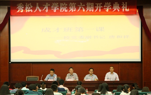 青春与奋斗同行,青春向祖国致敬。在纪念“五四”爱国运动97周年之际,我校召开秀松人才学院第六期开学典礼。校党委副书记唐和祥,学工部、校团委负责人出席典礼。唐和祥副书记代表学校党委对全校团员青年致以节日的问候。