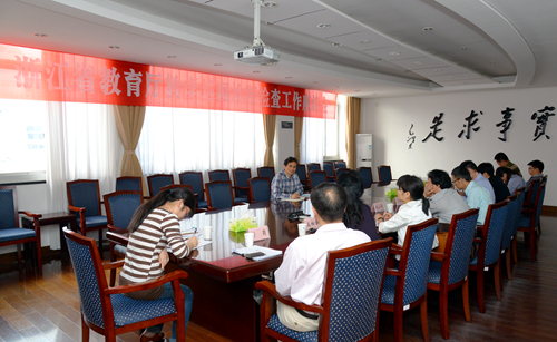 当天下午,围绕学校的教学制度建设、课程体系建设、课堂授课情况、学生实习实训指导,学生学风、考风等学业管理、教学评价情况、教学条件保障、教师培养培训和实践教学等主题,赵雷洪教授、应四爱教授和计伟荣教授分别主持召开了教务处长、职能部处管理工作人员、教师和特色优势专业负责人等四个不同层面的访谈座谈会。