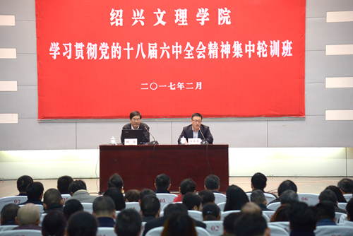 2月17日下午,在学校学习贯彻党的十八届六中全会精神集中轮训班上,省委宣讲团成员、省中国特色社会主义研究中心主任、省委宣传部原常务副部长胡坚作《开创全面从严治党的新境界——党的十八届六中全会精神宣讲》专题辅导报告。校党委书记汪俊昌主持报告会。