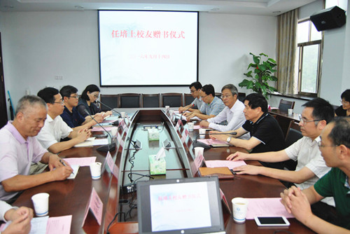 9月14日下午,任培土校友赠书仪式在医学院举行。校友总会会长宋培基,校党委委员、医学院党委书记柳国庆,校附属医院院长胡学建,对外联络处、图书馆、校附属医院、医学院相关负责人以及医学院师生代表等30余人出席赠书仪式。