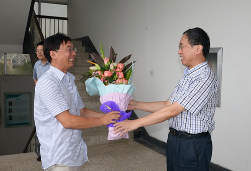 校党委书记汪俊昌带着鲜花向俄罗斯自然科学院外籍院士伍法权教授送上节日的慰问和祝福,感谢伍法权教授在科研方面倾注的大量心血和取得的令人瞩目的成就。汪俊昌仔细询问了伍教授的工作、生活情况和下一步工作打算,并介绍了学校“十三五”发展规划情况,希望伍教授能再接再厉,在学校创建绍兴大学的过程中继续贡献力量。