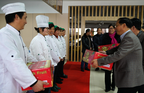 2月1日上午,正值农历小年,副校长杜时贵走访慰问寒假在岗职工,党(校)办、工会及相关部门负责人陪同慰问。