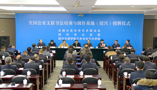 仪式上,全国公安文联《公安书法》执行副主编殷昌军宣读《关于在绍兴设立全国公安文联书法培训与创作基地的批复》文件,全国公安文联副主席、书协主席李忠信为基地授牌。
