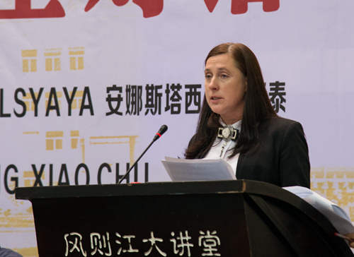 图拉州晓基诺市市政委员会主席奥列格•费多索夫,鲁迅文化基金会副理事长、绍兴分会会长李露儿,我校校长叶飞帆,副校长寿永明,校党委委员、宣传部部长胡保卫共同出席并聆听讲座。叶飞帆校长主持讲座。
