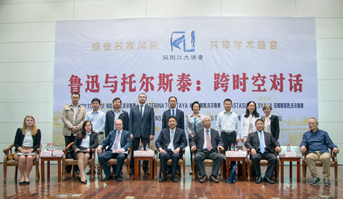 出席本次讲座的7位嘉宾分别是托尔斯泰玄孙、俄罗斯联邦总统顾问乌拉基米尔•托尔斯泰,托尔斯泰玄孙媳、托尔斯泰纪念馆馆长叶卡捷琳娜•托尔斯泰,牛津大学讲师安娜斯塔西•托尔斯泰,鲁迅长孙、鲁迅文化基金会副理事长兼秘书周令飞,上海外国语大学教授、文学研究院院长郑体武,中国鲁迅研究会副会长王锡荣及我校人文学院教授、中国鲁迅研究会副秘书长王晓初。