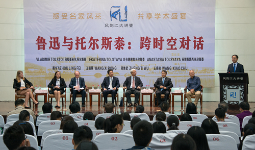 “托尔斯泰是俄国文学同样也是世界文学的化身,虽然见不到本人,但是我们同样可以从他们后代身上感受到其本人的精神风貌。”上海外国语大学教授、文学研究院院长郑体武教授对此次活动给予高度评价。他指出,鲁迅不仅欣赏托尔斯泰的文学,并在翻译和学习俄国文学时仍不忘维护、发扬、挖掘中国文化。与此同时,郑教授呼吁在座学生,在鲁迅精神的感召下,积极投身文学研究和创作中,尤其是对俄国文学和鲁迅的研究,继承并发扬优秀的文学艺术。