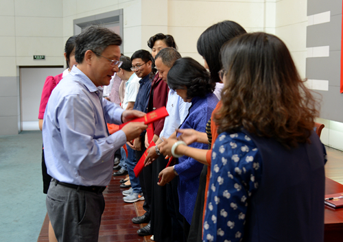 会上,校党委书记周达军为十一位书院院长颁发聘任书。