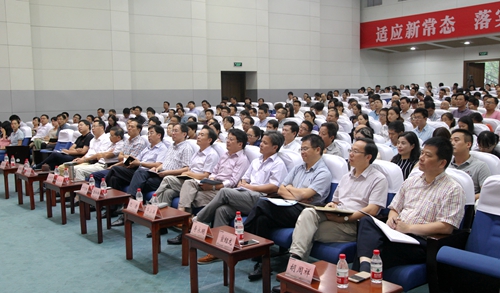 9月18日下午的铁城科教馆座无虚席,市委书记陈金彪来校作形势政策专题报告,介绍绍兴文化,畅谈发展形势,展望未来前景,促进我校教师干部认识当前国内社会经济形势,了解绍兴市“两重”战略和社会经济发展走向,更好地推动学校服务地方工作。他勉励广大师生切实增强中国特色社会主义道路自信、理论自信、制度自信,践行社会主义核心价值观,从历代乡贤身上汲取精神动力,进一步关心绍兴、热爱绍兴、发展绍兴,在创业创新的大舞台中成就人生梦想。校党委书记周达军主持报告会,全体校领导、处级以上中层干部、全体机关干部、学科主任、副高以上职称教师代表及学生代表等400余人聆听了报告。