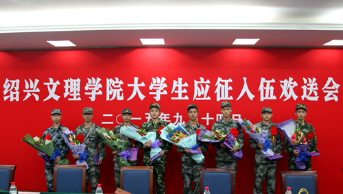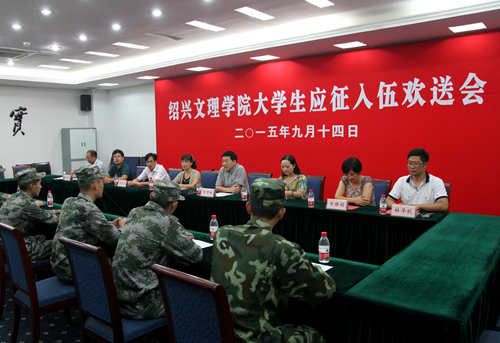 9月14日下午,我校为2015年应征入伍同学举行了一个简短而又隆重的欢送会。学工部、人武部负责人,相关学院学生工作副书记及应征入伍的新兵同学参加了会议。