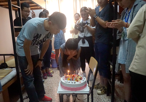 下午,叶飞帆校长率队前往仲申书院、青藤书院和元培学院,查看迎新工作。在仲申书院里,恰逢书院为当天生日的黄琳、黎嘉智两位新生举办庆生活动,叶校长立即加入,为寿星唱生日歌。“很激动、眼泪都快出来了”,现场同学不约而同说。
