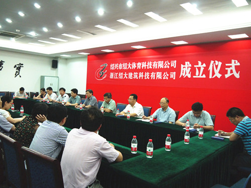 6月16日下午,我校首批学科性公司——绍兴市绍大体育科技有限公司、浙江绍大建筑科技有限公司在铁城科教馆举行成立仪式。校党委书记周达军、副校长杨大明、校党委委员柳国庆、各二级学院主要负责人,资产经营公司董事会、监事会成员和相关管理人员出席了仪式。成立仪式由资产经营公司总经理谢军波主持。