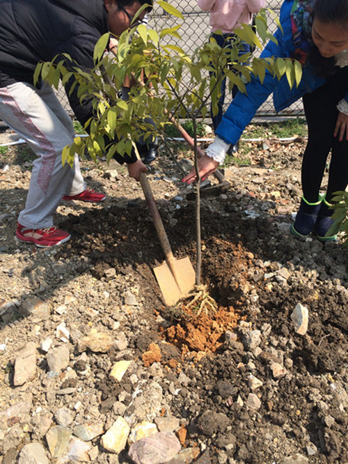 3月12日是全国植树节,在这个特别的日子里,绿化公司与外国语学院的部分同学在河东健身馆南侧场地进行了一次意义深刻的植树活动。这些同学希望毕业前能在学校留下一点纪念,于是趁着植树节来临便联系到绿化公司,要求给予提供一些植树的帮助,公司非常乐意与同学们一同参加这次活动,提前就安排好了种植场地、种植树苗及种植工具。