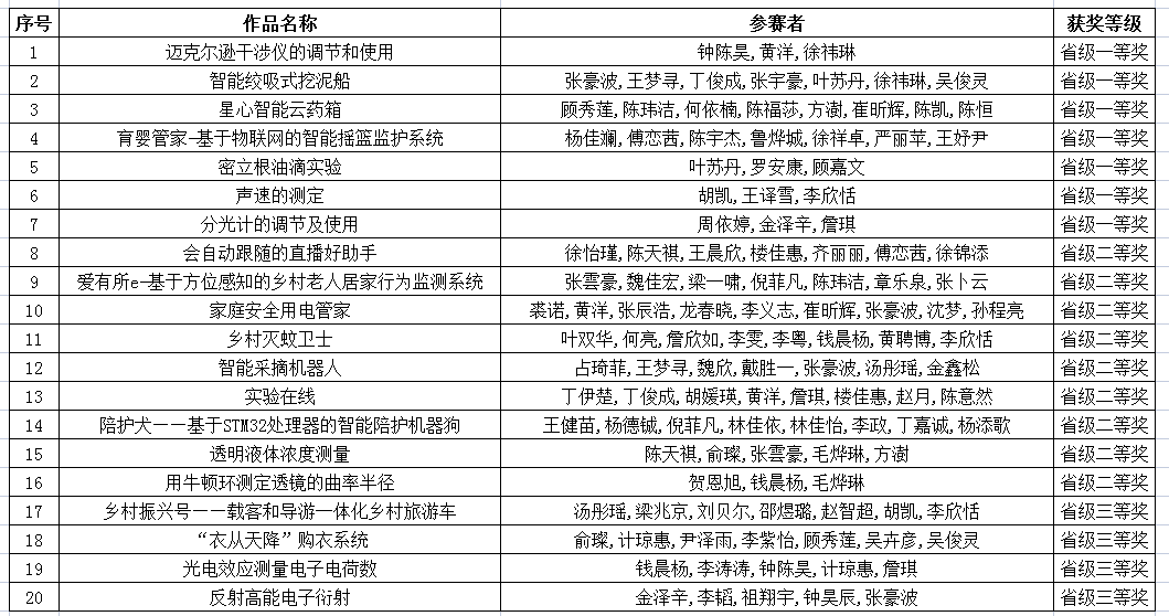 近日,我校在浙江省第十三届大学生物理实验与科技创新竞赛中获佳绩。20支队伍获得省级奖项,其中省级一等奖7项、省级二等奖9项、省级三等奖4项;入围省决赛答辩队伍数量、获得省级奖项总量和获省一等奖数量均为全省第一。