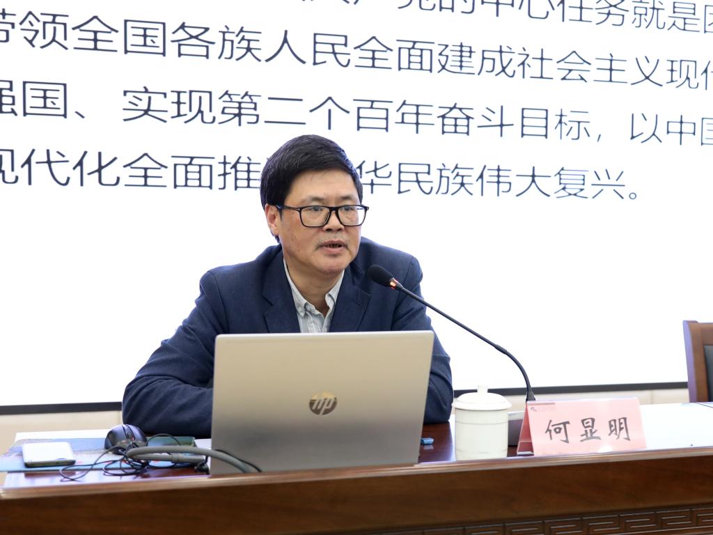 会议邀请了浙江省社会科学院院长何显明作题为《以中国式现代化全面推进中华民族伟大复兴》专题辅导报告。何显明从东西方现代化模式的比较与思考讲起,深入系统地阐述了中国式现代化基本规定的生成逻辑,全面解读了中国式现代化的本质要求和实现新道路,精辟提出了实现中国式现代化必须准确理解和牢牢把握的几个重大问题。