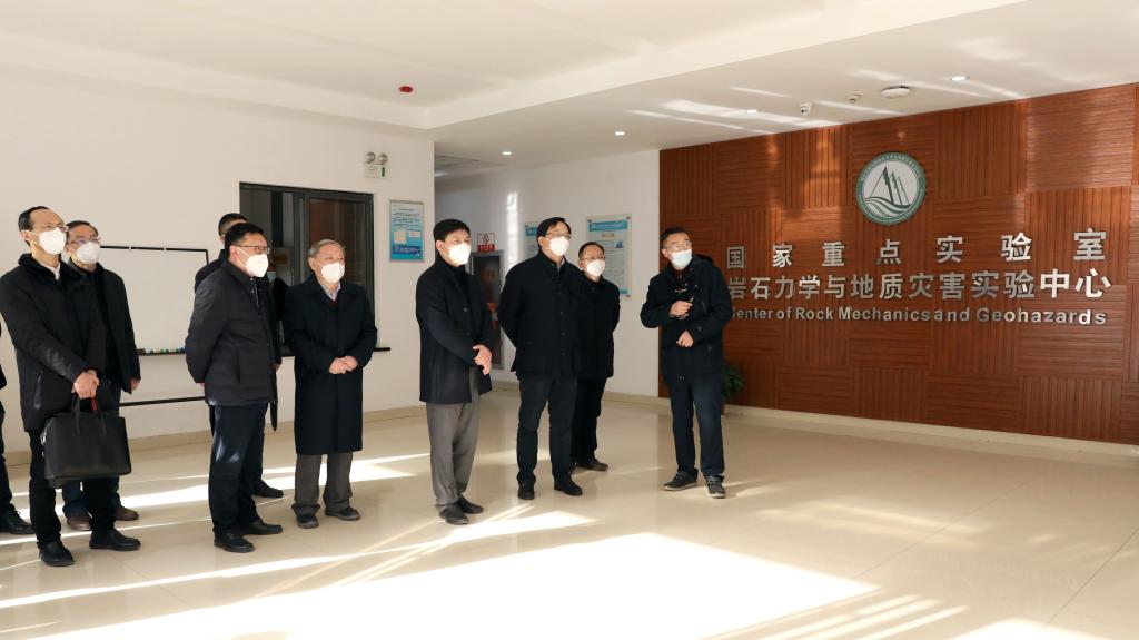 座谈会前,胡旭阳一行参观了学校校史馆和岩石力学与地质灾害实验中心。