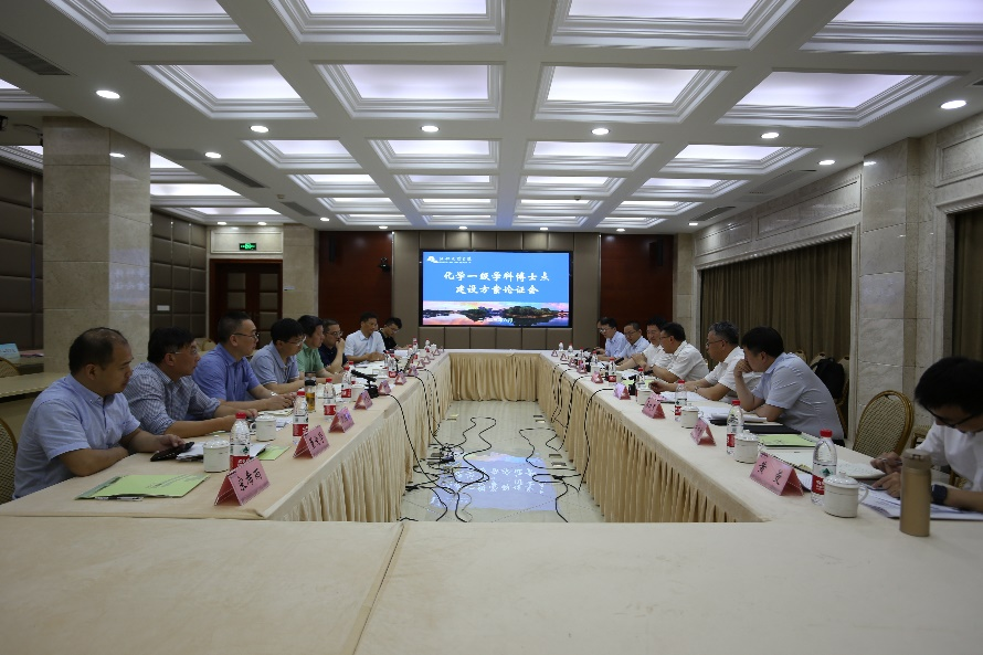 为进一步推进化学一级学科博士点建设,6月1日,学校召开化学一级学科博士点建设方案论证会。浙江大学阳永荣教授、天津大学乔建军教授、浙江师范大学朱钢国教授应邀出席会议,校党委书记汪俊昌,副校长柳国庆,研究生院、人事处、发展规划处、实验室管理中心及化学化工学院党政班子、申博工作组各方向负责人等参加会议。会议由柳国庆主持。