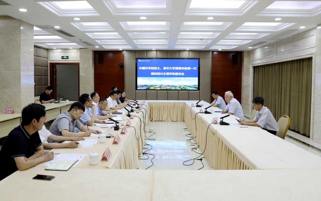 6月18日上午,中国科学院院士、清华大学原校长、清华大学高等研究院院长顾秉林教授,清华大学档案馆馆长、校史馆馆长范宝龙,清华大学物理系教授吴健一行来校调研指导。绍兴市委常委、副市长王涛,绍兴市政府副秘书长、办公室党组成员高波,绍兴市委组织部部务会议成员、人才办专职副主任娄丹丹,清华大学团委副书记(绍兴市委人才办挂职)于朔,绍兴市政府办公室综合三处副处长吴淼龙陪同调研,校党委书记汪俊昌,校长赵阳,学校办公室、研究生院、数理信息学院相关负责人和教师代表参加调研。汪俊昌主持调研座谈会。